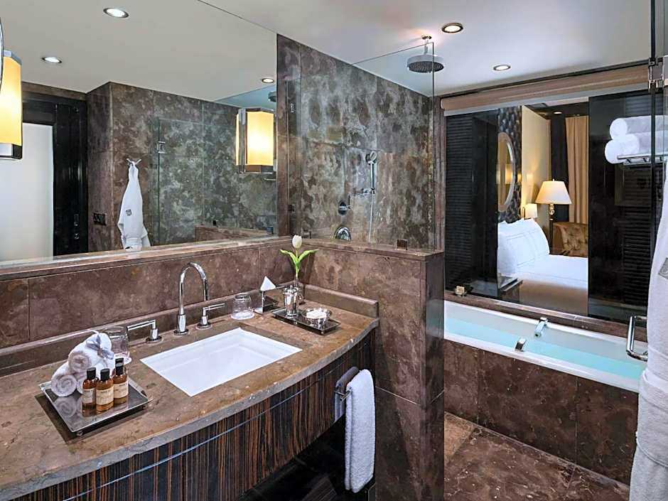 * أجنحة فاخرة بمساحات واسعة مع منطقة جلوس منفصلة، نوافذ عازلة للصوت، ومرافق راقية مثل جاكوزي أو دش مطري.