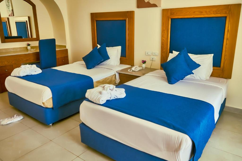 - غرف قياسية: بمساحة تبدأ من 30 مترًا مربعًا، مزودة بتكييف، تلفزيون بشاشة مسطحة، ميني بار، وشرفة أو تراس يطل على البحر الأحمر أو الحدائق الخضراء.